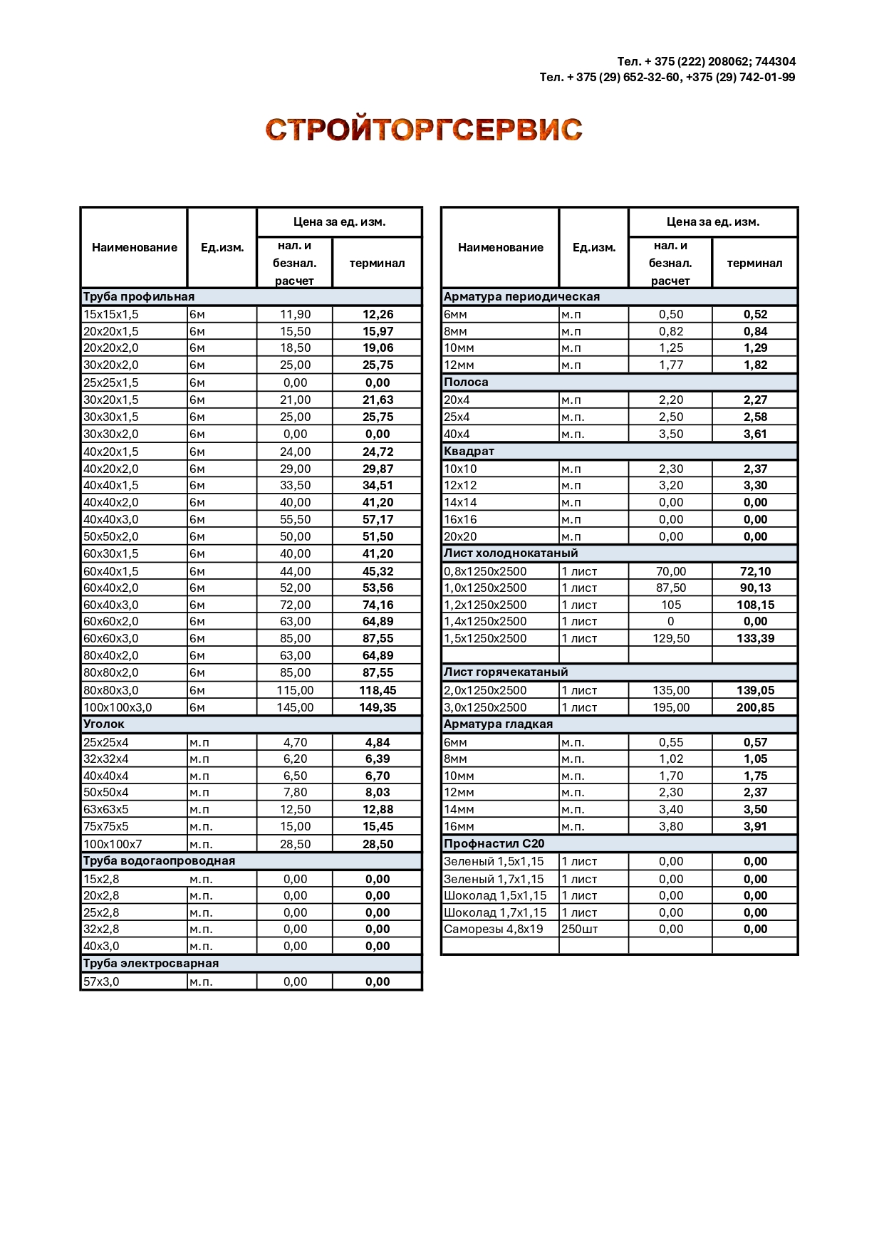 Прайс-лист